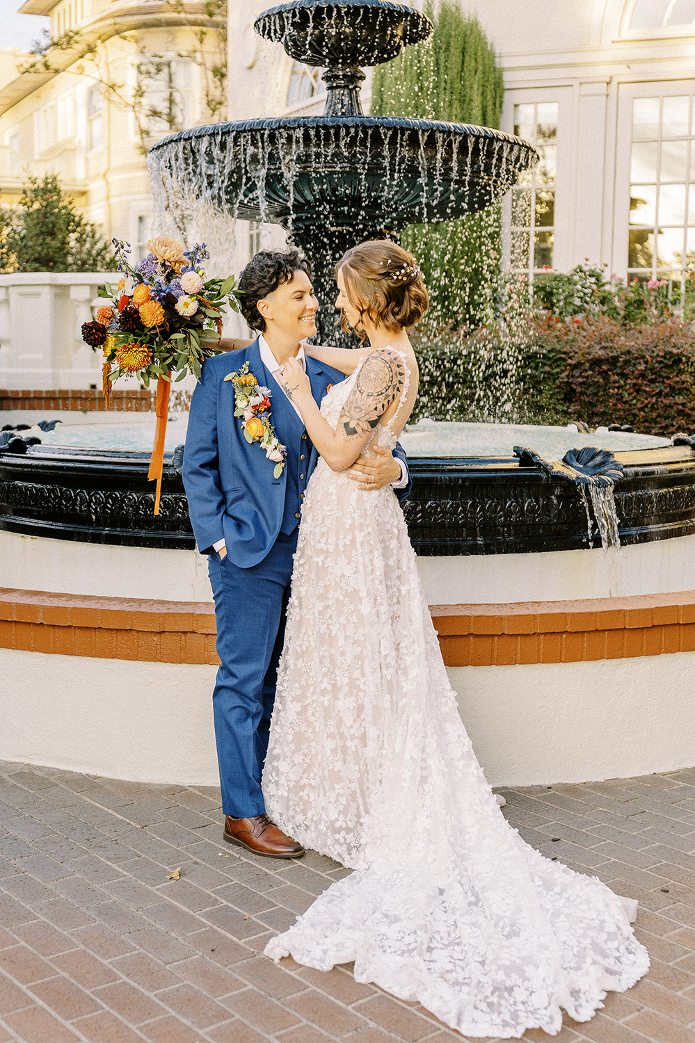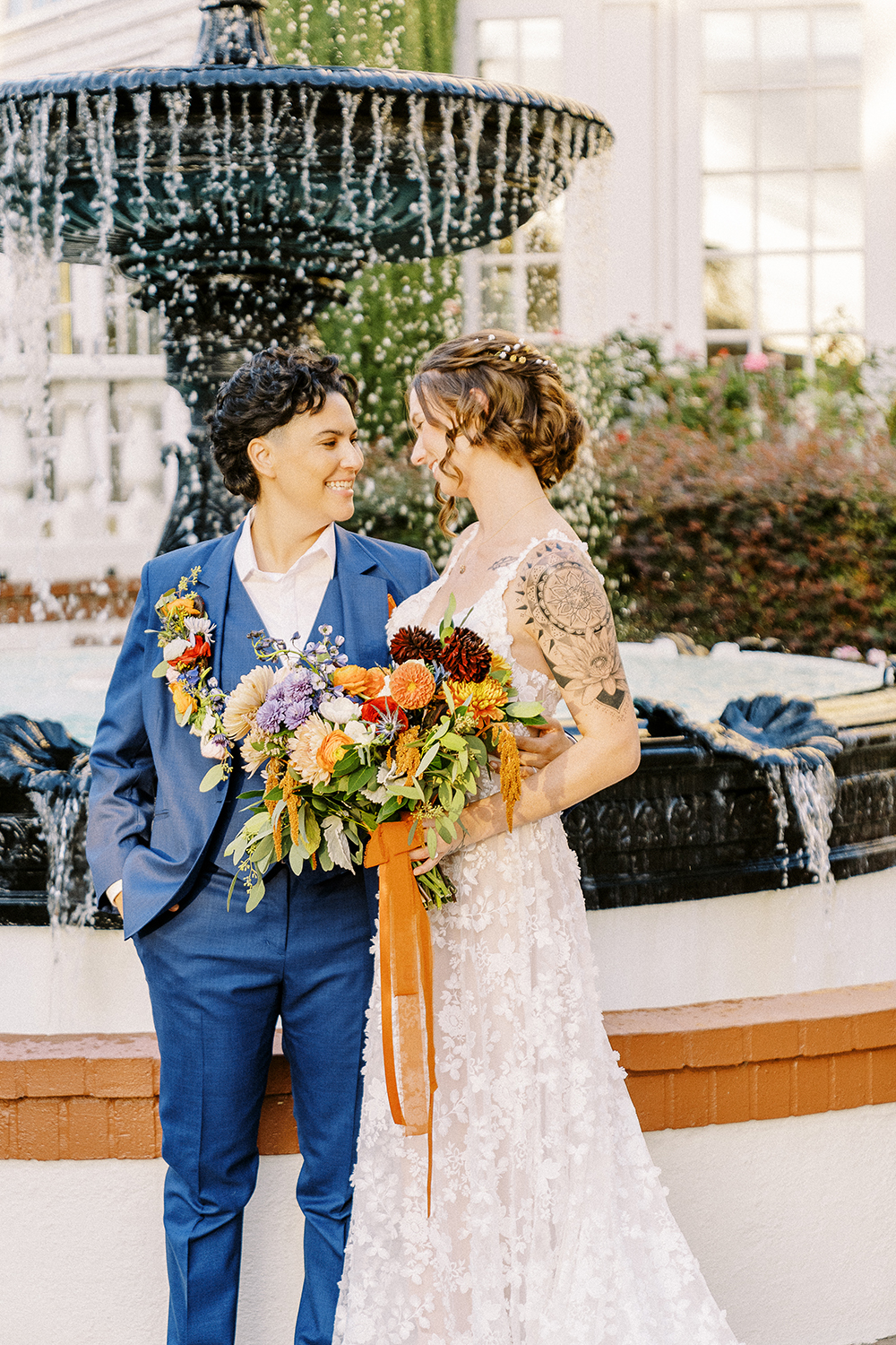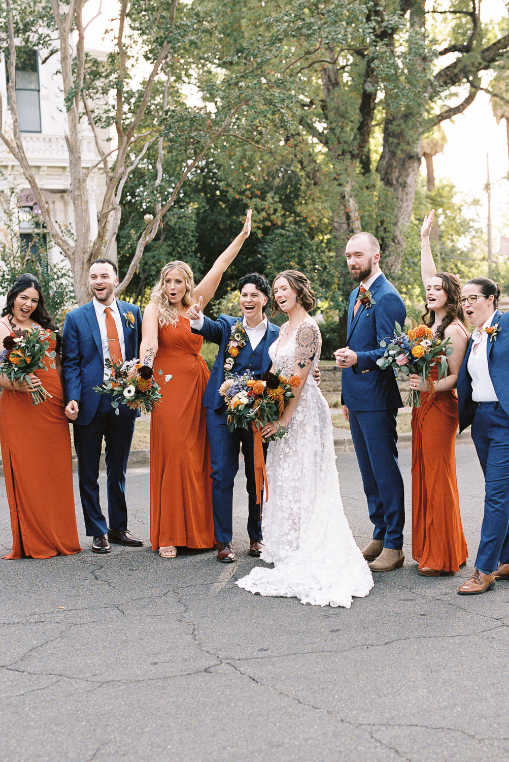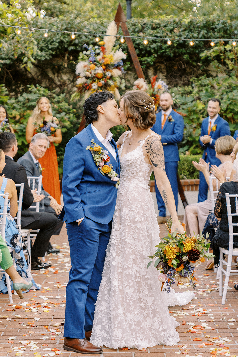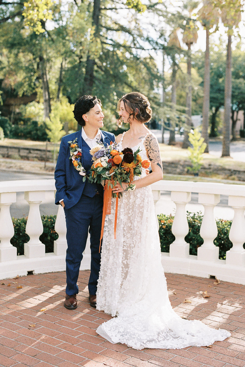 Fall weddings at Vizcaya in Downtown Sacramento have always been a dream. But when they’re as full of love and intention as B&G’s, it’s pure perfection. With the warm orange and inviting blue wedding colors setting the tone, Vizcaya’s charming gardens and elegant architecture created the ideal backdrop for a celebration of love and authenticity. Heartfelt vows exchanged in front of their nearest and dearest, followed by joyful moments captured against the venue’s timeless beauty. This season brings cozy romance and a sense of warmth that’s perfect for honoring their unique love story. If you’re dreaming of a wedding filled with inclusivity, charm, and autumn vibes, Vizcaya is the place to bring it to life!