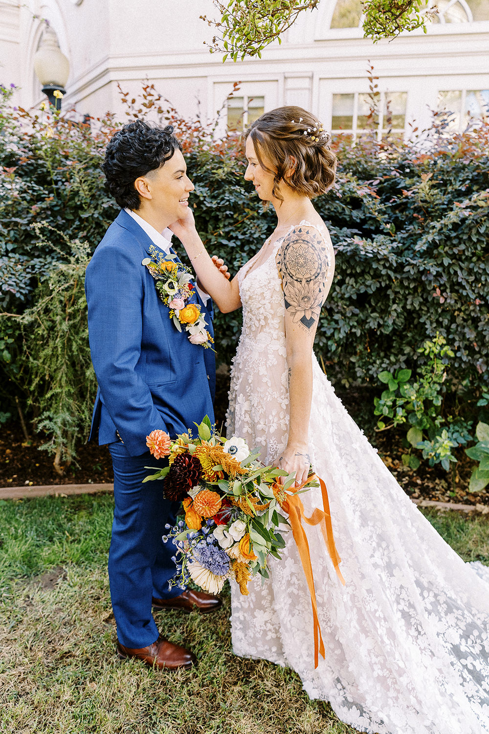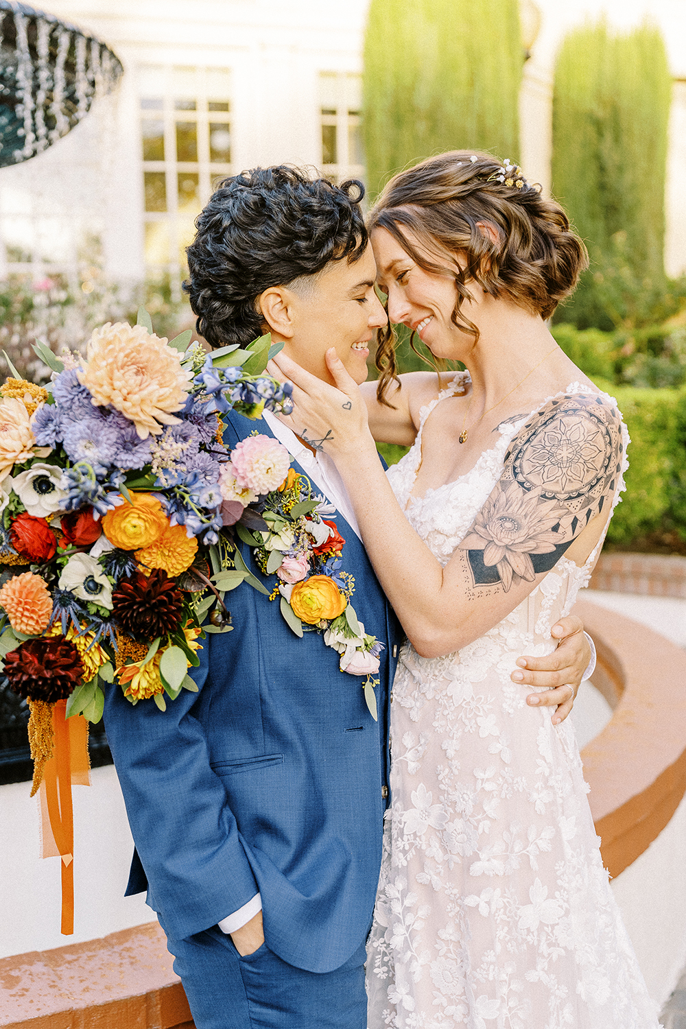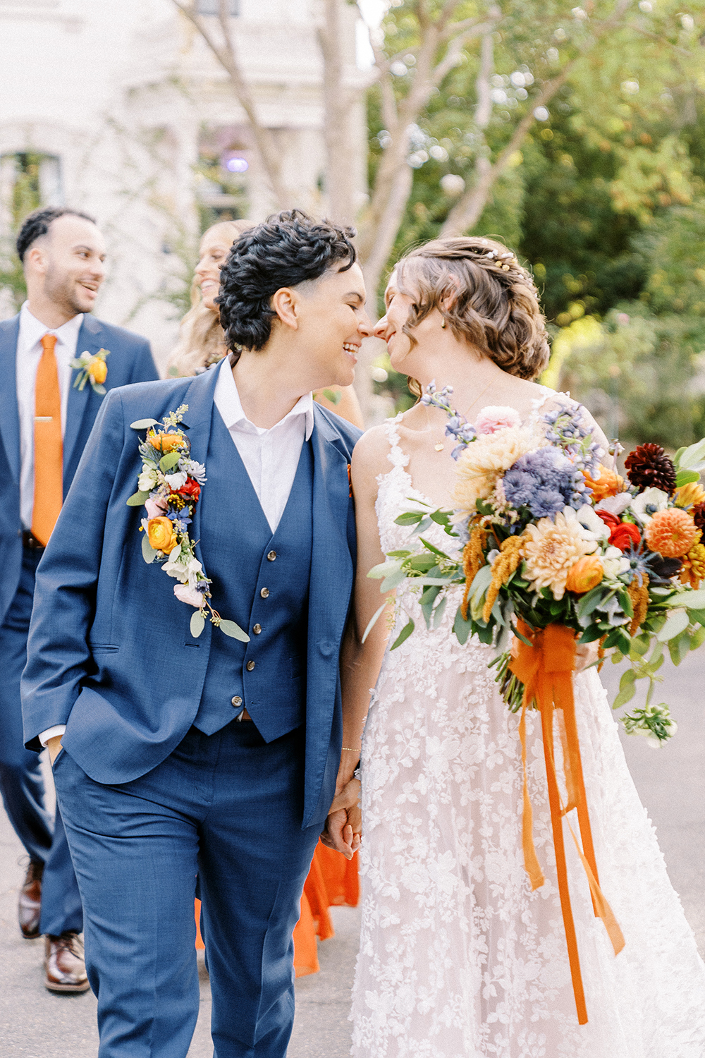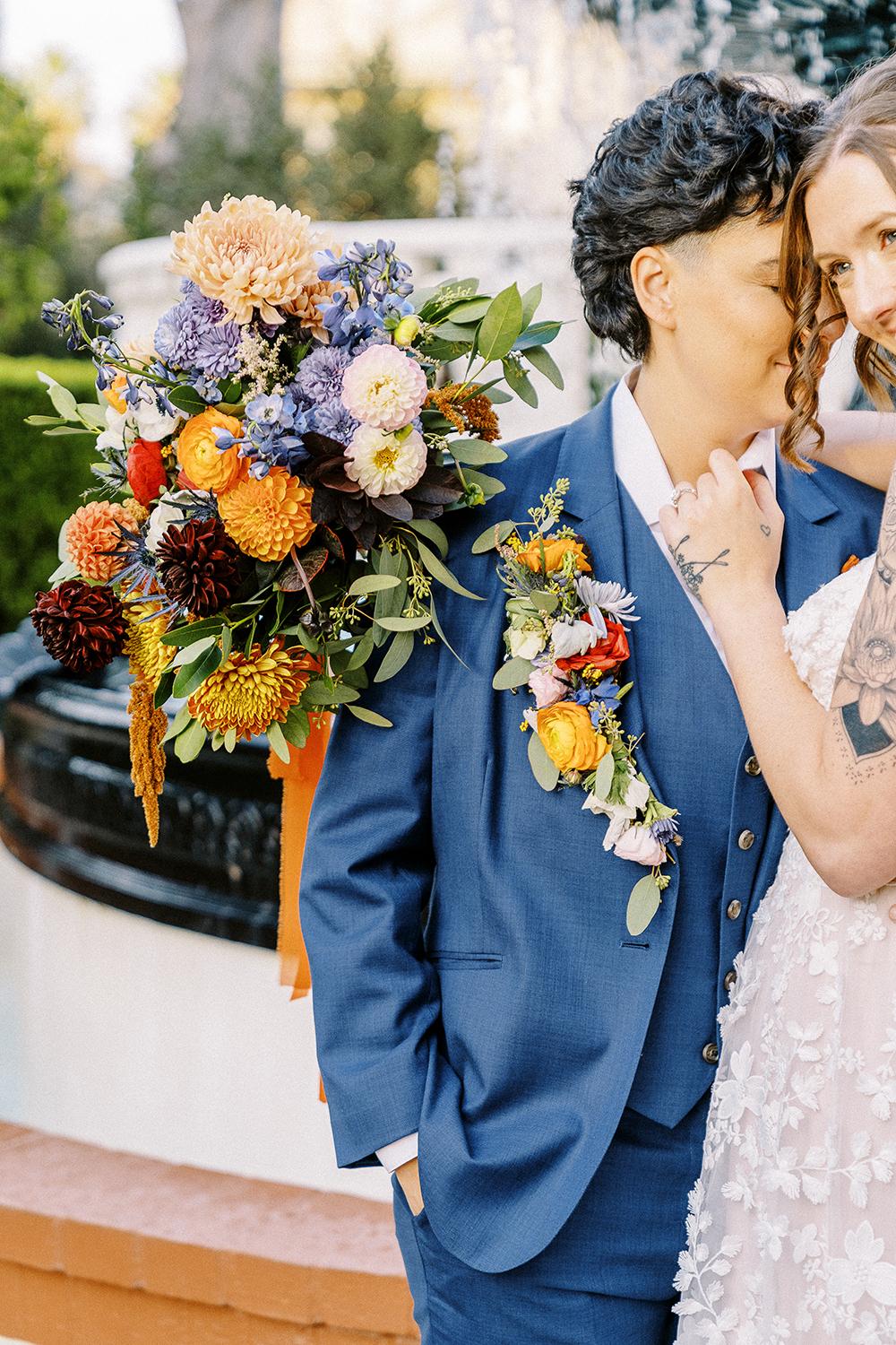 Fall weddings at Vizcaya in Downtown Sacramento have always been a dream. But when they’re as full of love and intention as B&G’s, it’s pure perfection. With the warm orange and inviting blue wedding colors setting the tone, Vizcaya’s charming gardens and elegant architecture created the ideal backdrop for a celebration of love and authenticity. Heartfelt vows exchanged in front of their nearest and dearest, followed by joyful moments captured against the venue’s timeless beauty. This season brings cozy romance and a sense of warmth that’s perfect for honoring their unique love story. If you’re dreaming of a wedding filled with inclusivity, charm, and autumn vibes, Vizcaya is the place to bring it to life!