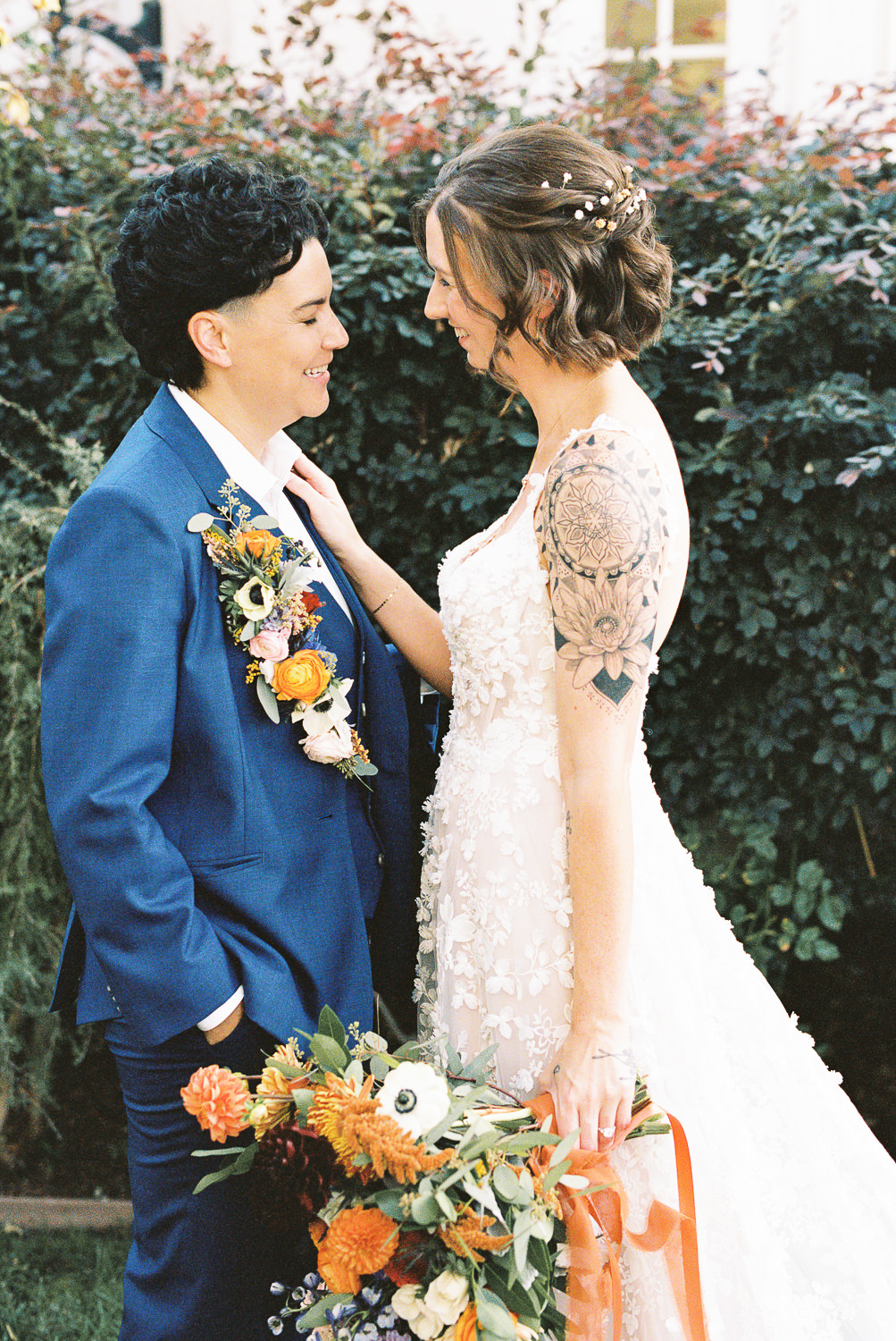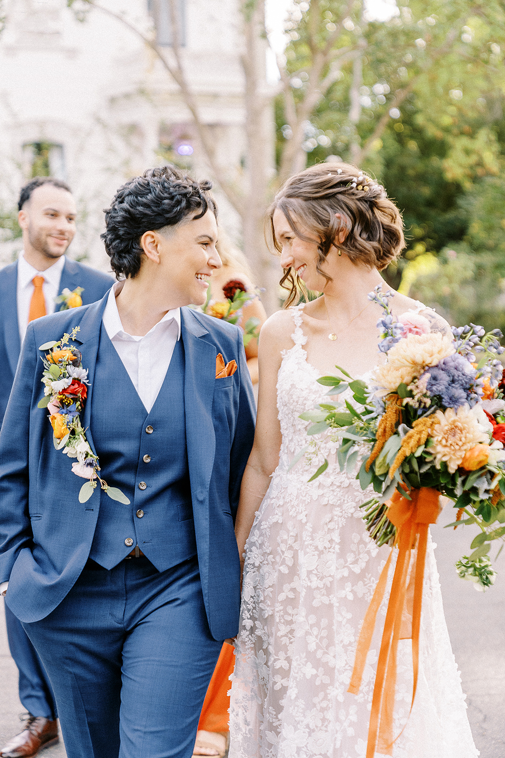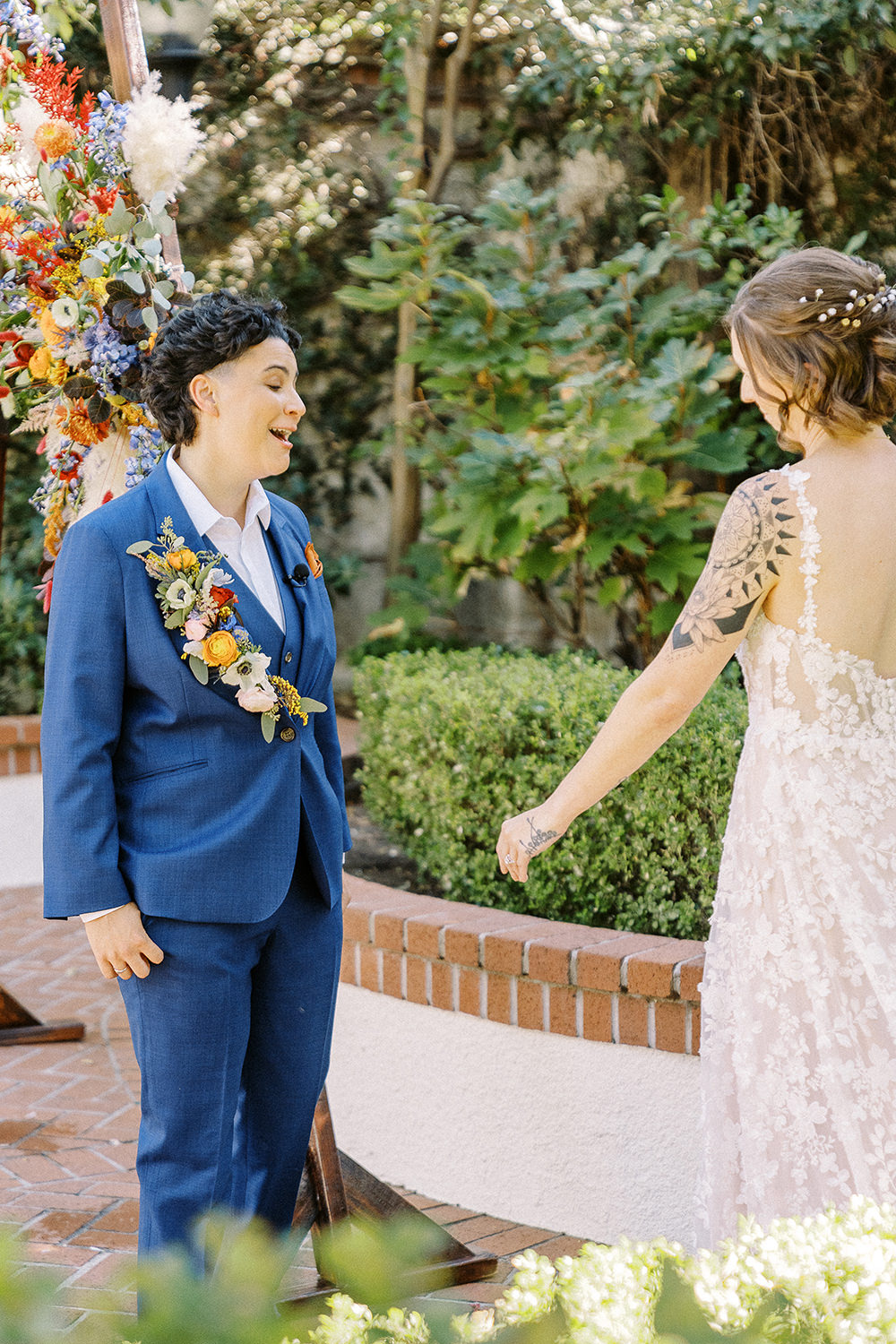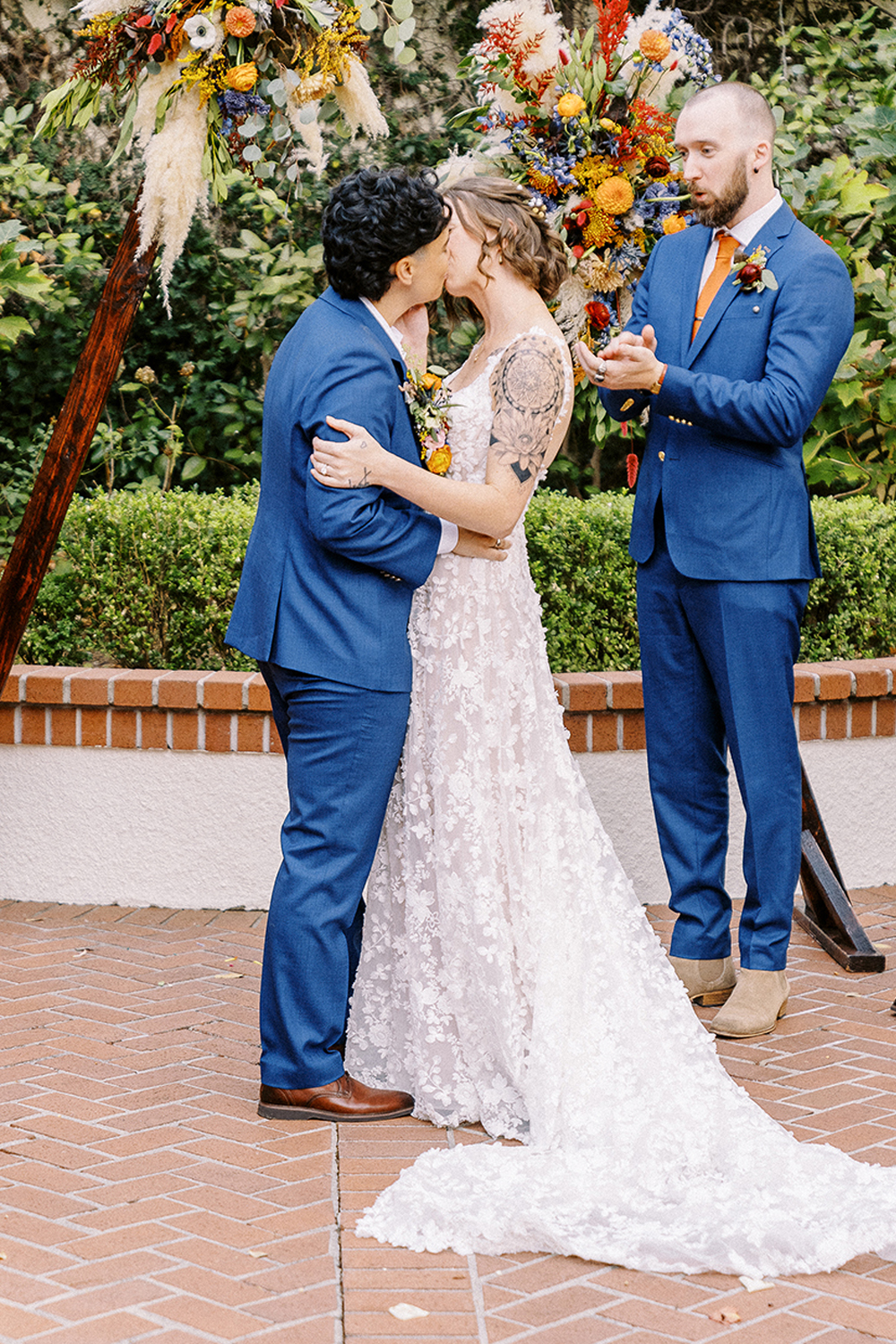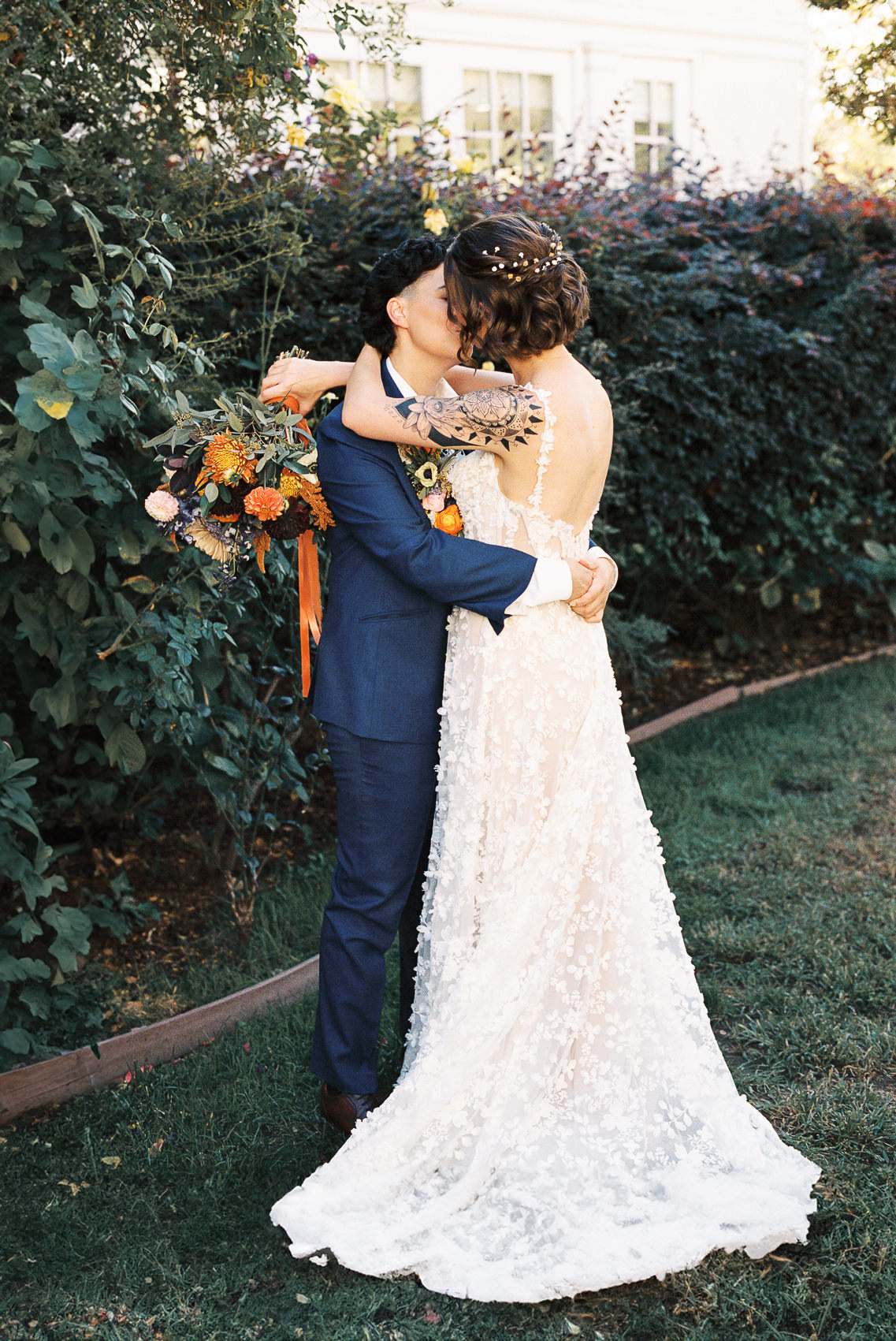 Fall weddings at Vizcaya in Downtown Sacramento have always been a dream. But when they’re as full of love and intention as B&G’s, it’s pure perfection. With the warm orange and inviting blue wedding colors setting the tone, Vizcaya’s charming gardens and elegant architecture created the ideal backdrop for a celebration of love and authenticity. Heartfelt vows exchanged in front of their nearest and dearest, followed by joyful moments captured against the venue’s timeless beauty. This season brings cozy romance and a sense of warmth that’s perfect for honoring their unique love story. If you’re dreaming of a wedding filled with inclusivity, charm, and autumn vibes, Vizcaya is the place to bring it to life!